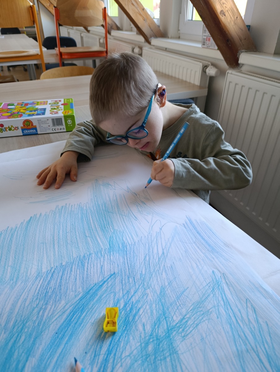 výtvarnou výchovu v podobě společné práce - zimní strom