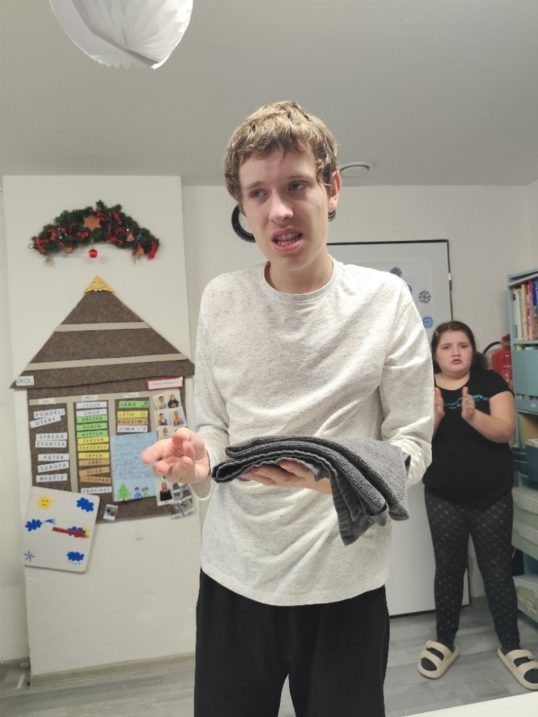 Minulý týden jsme v naší třídě také hodně tvořili – drobný dáreček s přáním k Vánocům, proto vkládáme fotky až tento týden 🎁A špinavé ručníky bylo třeba vyprat☝️ – naši šikulové se o to postarali! Dát do pračky, vyndat, pověsit, poskládat a uložit na své místo… Zdobení déčkovského stromečku bylo příjemnou tečkou a zábavou 🌲😉