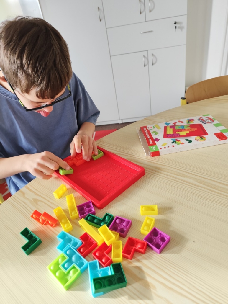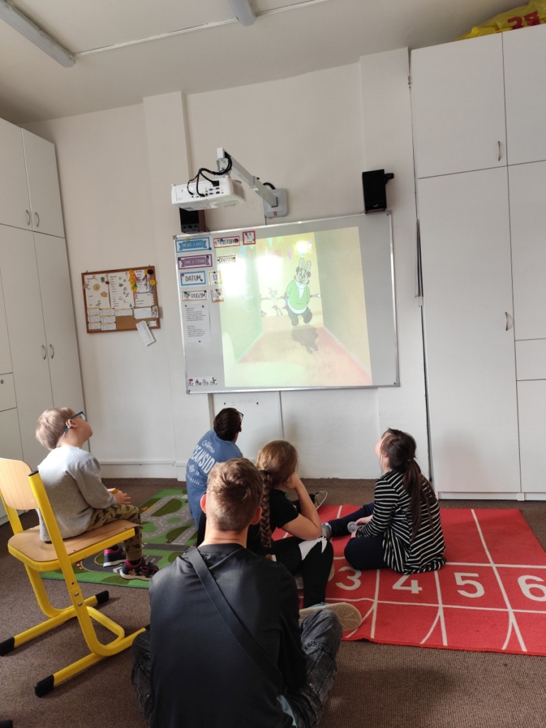 Pobyt v malé tělocvičně – hra Aktivity s paní Radkou, skákání na míči. Ve třídách pak stavění komínů, dívání se na pohádky, hlavolamy, trénování skládání puzzlí, kreslení si, hrátky se zvířátky a mnoho dalších činností.
